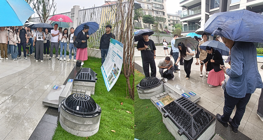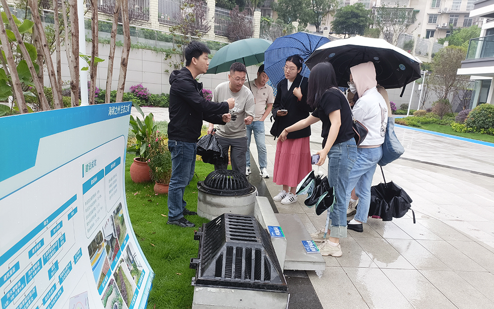 曾逢春副主任帶領(lǐng)參觀團一行深入小區(qū),查看了我公司自主研發(fā)生產(chǎn)的預(yù)制井座、側(cè)平石導(dǎo)流槽、開孔路沿石、沉泥槽馬蹄石等海綿城市設(shè)施裝式標(biāo)準(zhǔn)部品的實際運行效果。恰逢雨天,參觀團近距離見證了這些產(chǎn)品改善了小區(qū)生態(tài)環(huán)境,為居民創(chuàng)造舒適宜居的生活環(huán)境。