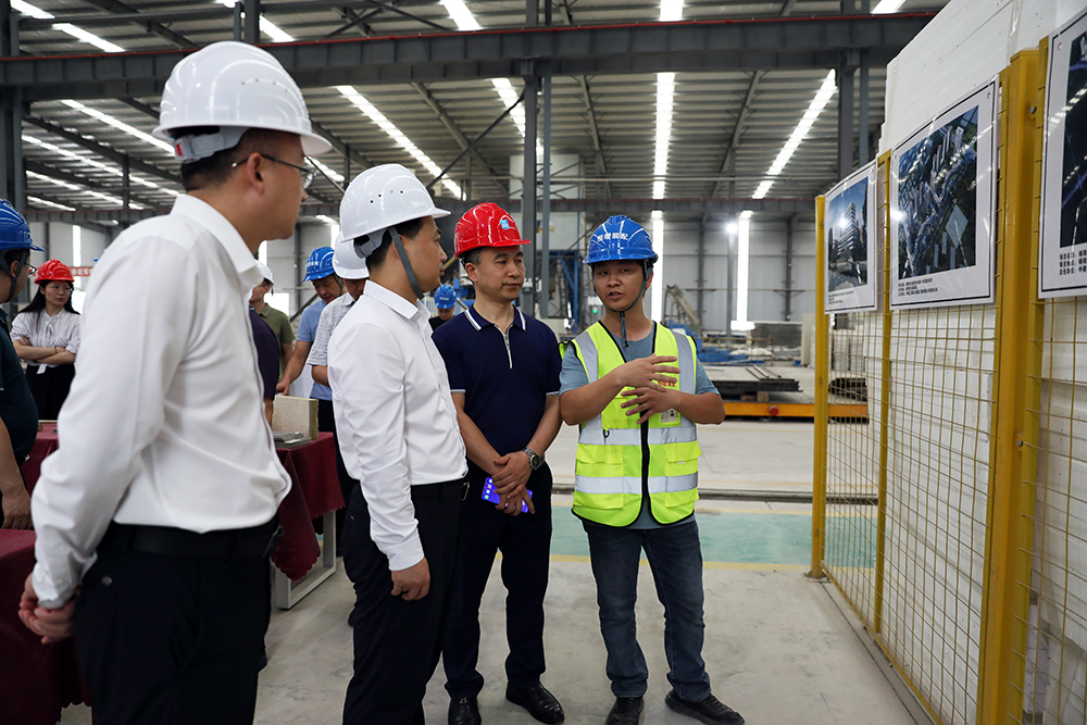 鄧章軍市長一行走進(jìn)企業(yè)實(shí)地查看,詳細(xì)了解公司預(yù)制類裝配式建材生產(chǎn)線運(yùn)行和三期項(xiàng)目建設(shè)情況,了解生產(chǎn)經(jīng)營和項(xiàng)目投資中遇到的困難,現(xiàn)場辦公解決問題。